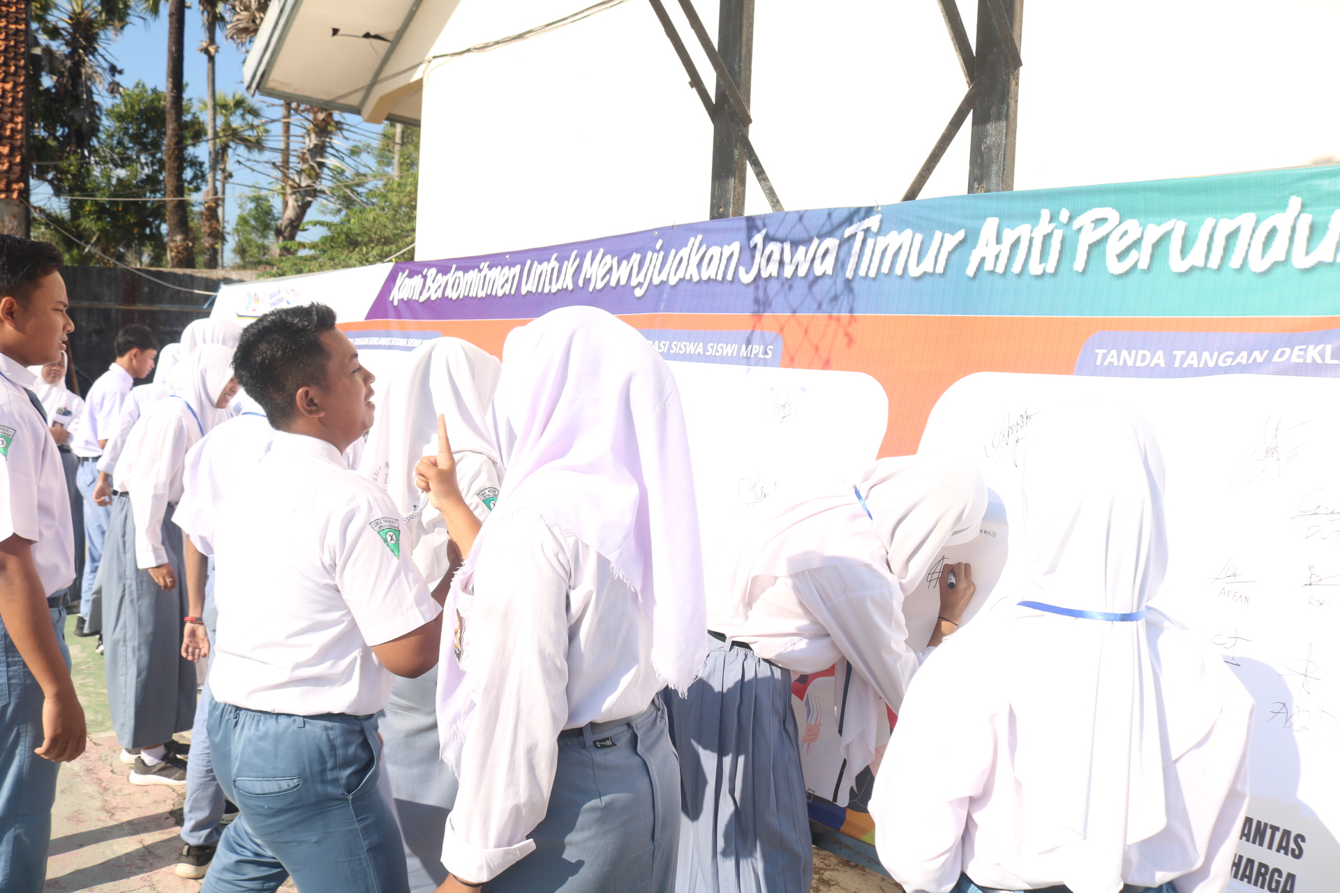 "Tanda tangan ini merupakan komitmen bersama seluruh warga sekolah terutama siswa baru untuk mencegah perundungan dalam segala bentuk,"terang Mantan Wakasek Kurikulum SMAN 1 Gapura ini berapi-api.
