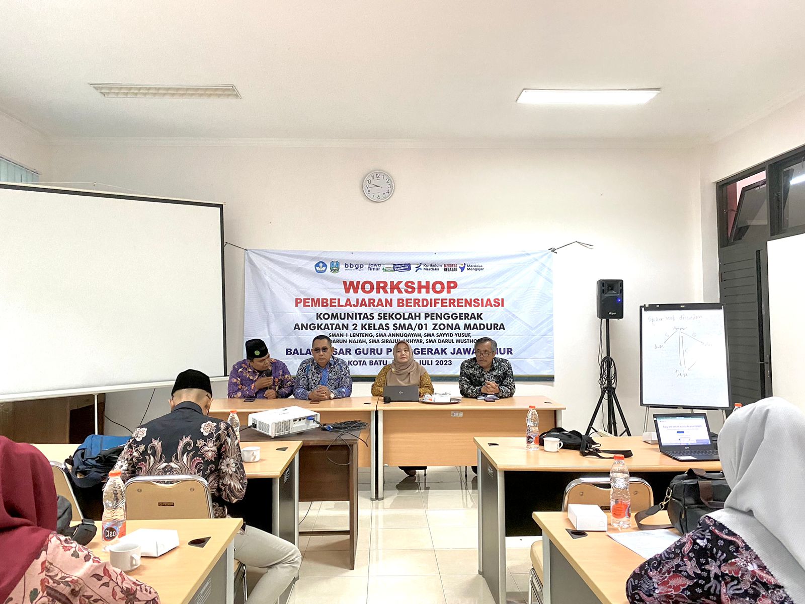 Batu, Malang, 13/07/2023- Beberapa sekolah penggerak tingkat SMA se Kabupaten Sumenep yang tergabung dalam Komunitas Sekolah Penggerak Kab.Sumenep yang terdiri dari SMAN 1 Lenteng, SMA Sayyid Yusuf Talango, SMA Islam Misbahul Akhyar Raas, SMA Islam Darun Najah Ganding, SMA Annuqayah, dan SMA Darul Mustafa Bangkalan menggelar kegiatan workshop pembelajaran yang ditempatkan di Balai Besar Guru Penggerak (BBGP) Kota Batu, Mallang sejak hari ini, 13 Juli sampai 14 Juli 2023. Workshop pembelajaran kali ini difokuskan pada pembelajaran berdiferensiasi dan penguatan sosial emosional yang nanti akan menguatkan dalam implementasi pembelajaran.