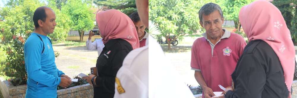 Sebelum meninggalkan SMA Negeri 1 Lenteng, Kabid PSMA Disdik Provinsi Jawa Timur, Hj.Suhartatik,S.Pd.,M.Si memberikan tali asih sebagai tanda terima kasih kepada tenaga kebersihan dan penjaga sekolah yang telah bersusah payah ikut andil dalam menciptakan lingkungan yang bersih dan indah di sekolah ini. (mam/admin)