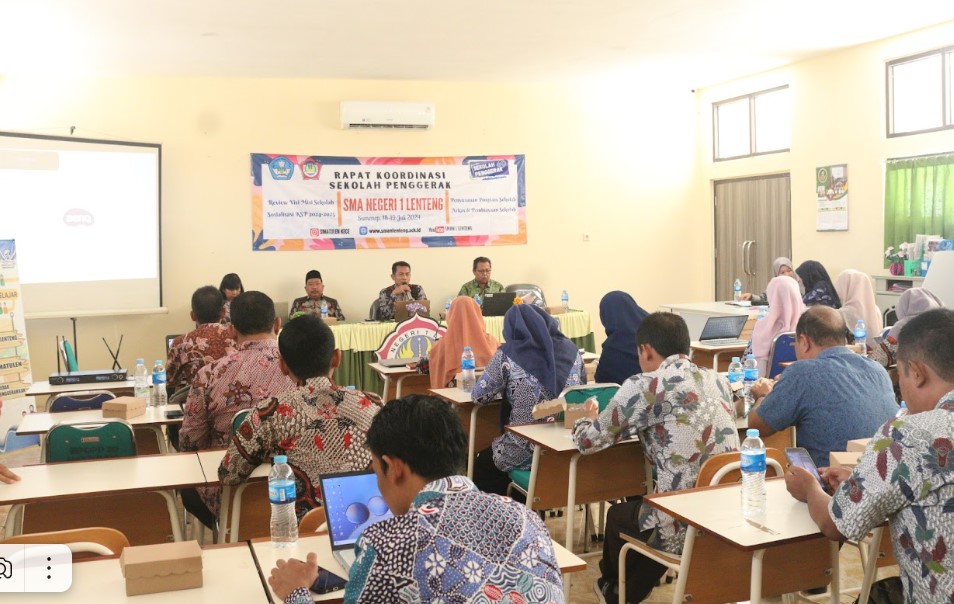 Lenteng, 19/07/2024- Rapat Koordinasi Sekolah Penggerak (Rakor SP) SMA Negeri 1 Lenteng berlangsung sangat alot yang digelar di SMAN 1 Lenteng, kemarin (18/07/2024) di Library Room sekolah setempat. Alotnya pembahasan saat rapat koordinasi tersebut berlangsung saat pembahasan "Review Visi-Misi Sekolah" yang dipimpin langsung oleh Kepala SMAN 1 Lenteng, Sucipto,S.Pd.,M.Pd.